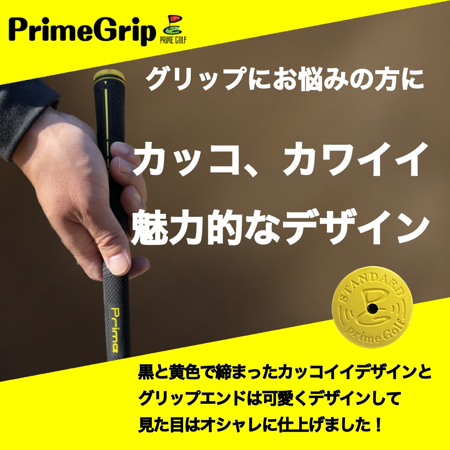 さらに、グリップエンド部分はプライムゴルフのロゴをマークし、可愛さも兼ね備えたデザインとなっております。